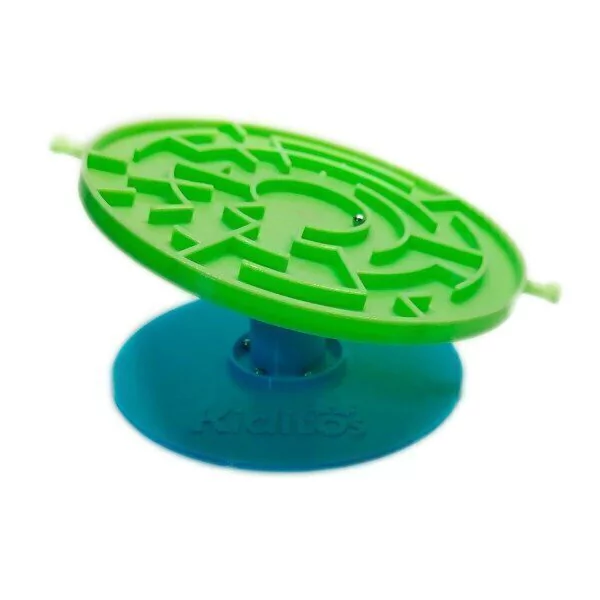 Porque cuenta con una base fija, con un sistema de rótula que permite dar movimiento libre al laberinto 🔄 para mover la bolita, manipulándolo desde sus manijas.